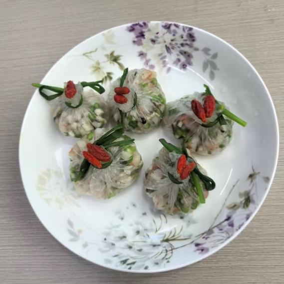 在教学演示过程中,潘大厨不时地向大家强调关键要点和注意事项。他告诉大家,制作富贵石榴球的关键在于外皮的软化和包裹技巧。馅料需要精心搭配,以确保口感丰富、味道鲜美;而外皮则要薄而有韧性,这样才能在烹饪过程中保持完整的形状。职工们聚精会神地观看,不时地记录下重要的步骤和要点。