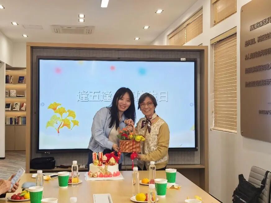 在温馨的氛围中,活动进入 “感恩同行 —— 逢五逢十教师生日庆祝” 环节。学院特别为近期迎来 “逢五逢十” 生日的退休教师何慧敏准备了惊喜。外语学院院长助理法语系左百瑶教授为何慧敏老师送上生日祝福,她表示,教师是学院最宝贵的财富,每一位教师的付出都值得被铭记与珍视,希望通过这样的仪式感,让大家感受到学院 “大家庭” 的温暖。简单而真挚的生日环节,不仅传递了学院对教师的关怀,更拉近了大家之间的距离。