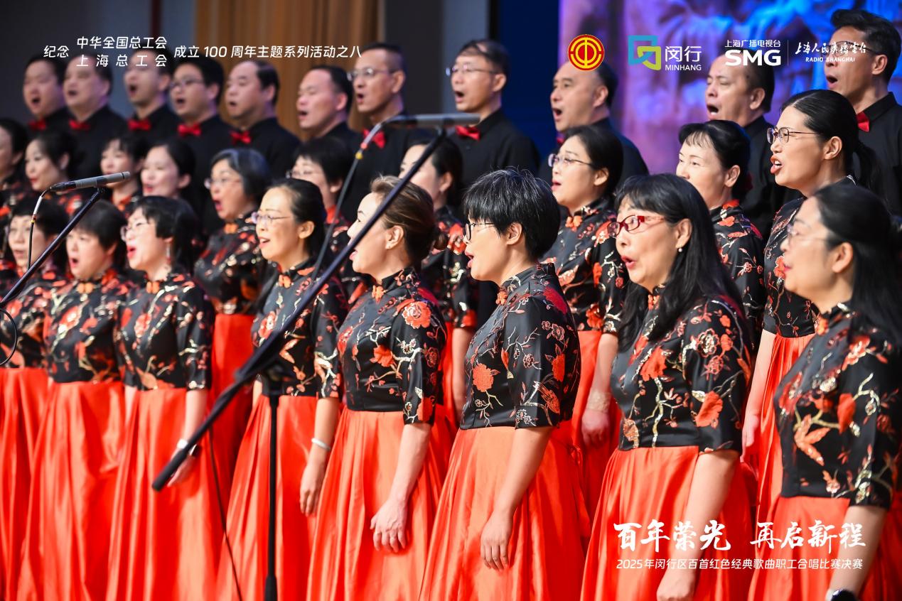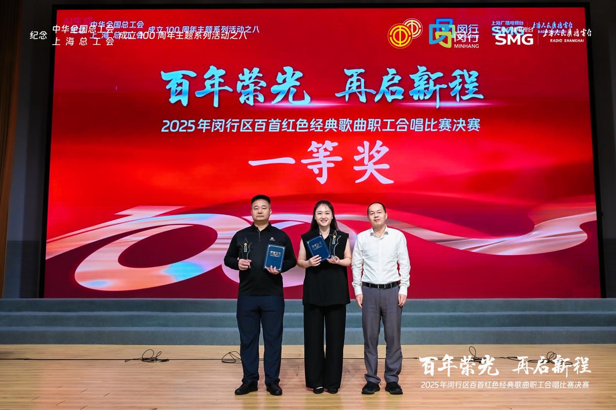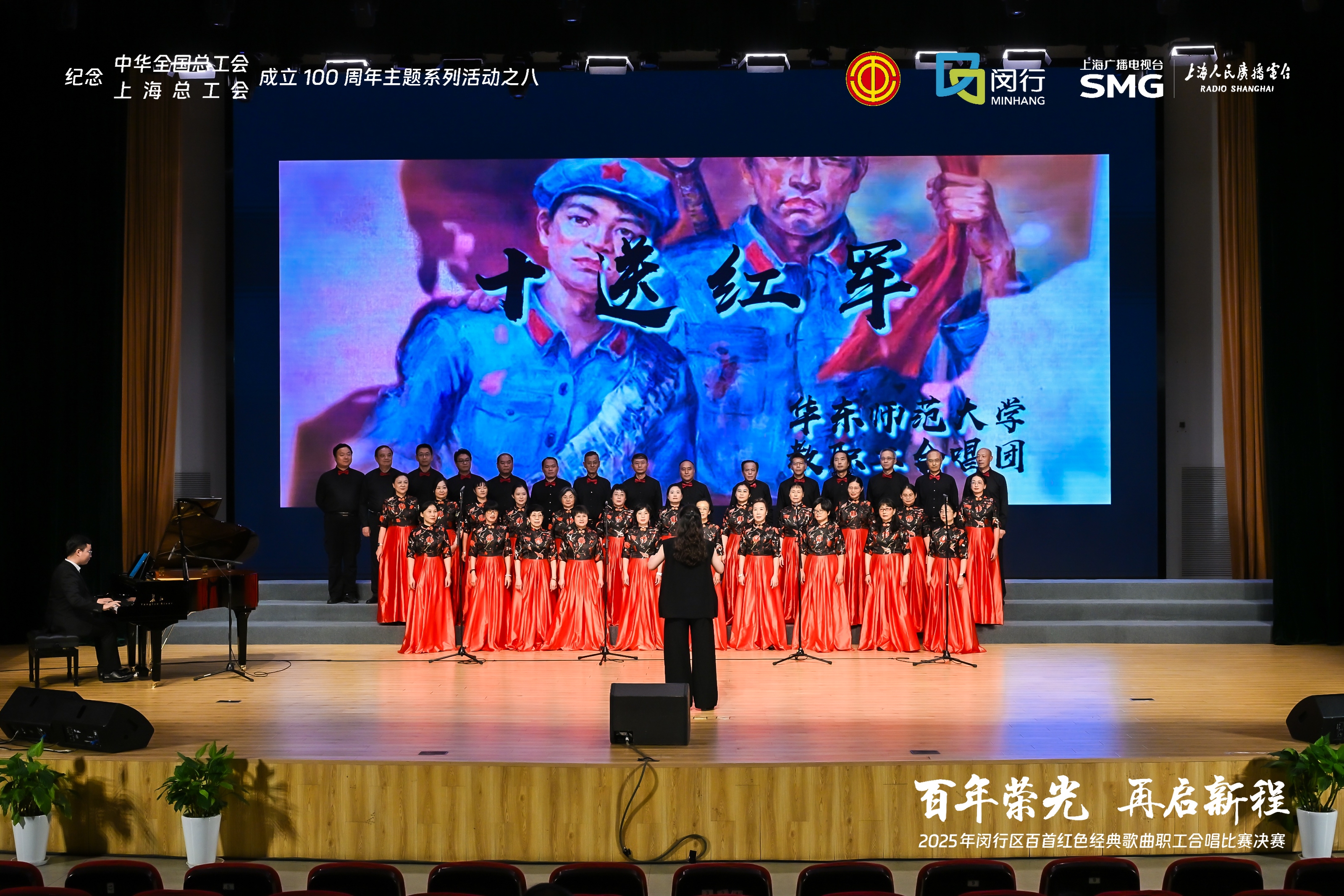 近日,“百年荣光 再启新程”2025年闵行区百首红色经典歌曲职工合唱比赛决赛,在莘庄工业区文化体育活动中心圆满落幕。我校教职工合唱团凭借对经典曲目《十送红军》的深情演绎,在全区19支决赛队伍中脱颖而出,一举斩获比赛一等奖,以音乐为媒,展现了新时代教师队伍卓越的艺术素养和昂扬的精神风貌。