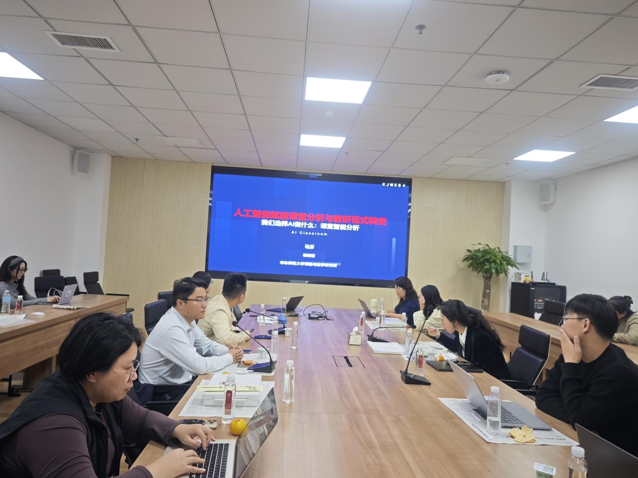 课程与教学系教工党支部书记、国际课堂分析实验室主任杨晓哲副教授以“人工智能赋能课堂分析与教研范式转变”为题作分享报告,系统介绍了团队自主研发的高品质课堂分析系统的背景、方案与最新进展。该系统依据有监督学习算法对课堂视频进行智能分类与多维标注,并构建高品质课堂分析标准进行好课画像。目前,该系统已完成全国范围内万余节课堂的深度分析,生成个性化诊断报告助力教师开展教研、改进课堂教学,并从大数据中挖掘课堂行为规律。与会者围绕系统技术架构、大模型基座、多场景应用、学习效果等问题与杨晓哲副教授展开研讨,杨晓哲副教授针对模型基座选择、系统当前的能力局限与应用场景拓展等问题分享了实践探索经验,并就人工智能与课程教学的深度融合提出前瞻性思考。