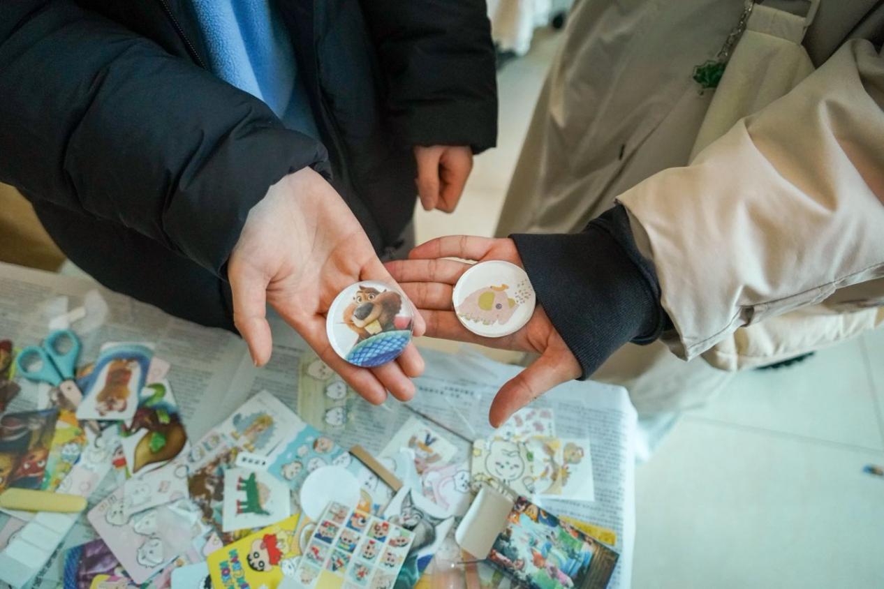 冰箱贴制作区是创意与温情的碰撞场。现场备齐彩纸、磁铁等材料,还贴心提醒大家可自带包装袋、照片等小物件。师生们各展巧思,有人将新春剪纸贴在冰箱贴,有人把校园风景、实验室仪器绘于其上,还有人贴上家人合照,让小物件承载思念与创意。普通材料在巧手下变成独一无二的新春礼物,创作的成就感与温暖,成为这个新春特别的收藏。