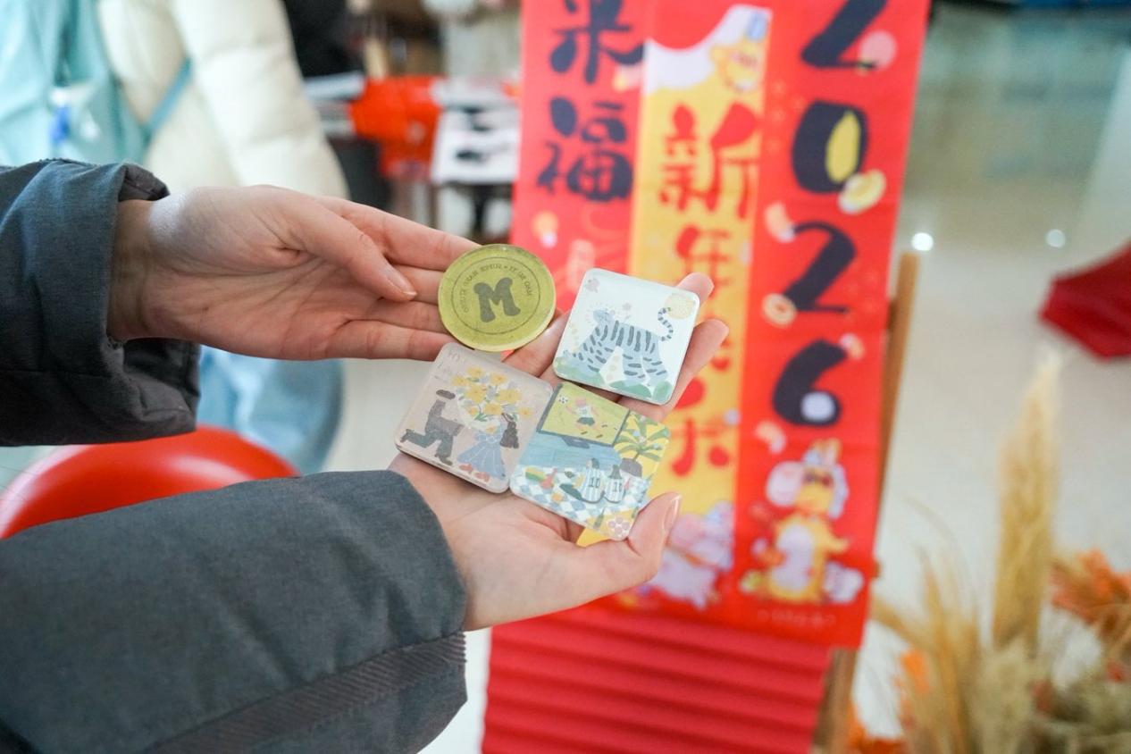 1月9日上午,这场融合传统与创意的新春游园会如约开启。糖画的甜香、笔墨的韵味、冰箱贴的巧思交织在一起,师生们亲手创作、欢笑互动,在热闹氛围中触摸真切的年味,为校园添满了浓浓的节日气息。