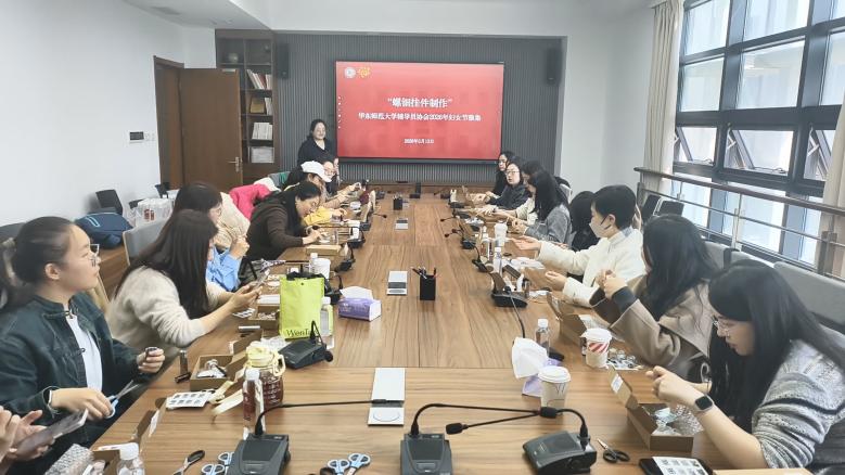 春和景明,暖意融融,在“三八”国际妇女节来临之际,为丰富辅导员精神文化生活,传承中华优秀传统文化,舒缓工作压力,华东师范大学辅导员协会精心举办“螺钿拾趣,芳华绽放”螺钿挂件手作活动,3月13日下午,辅导员们欢聚一堂,在指尖劳作中感受非遗魅力,共庆专属节日。