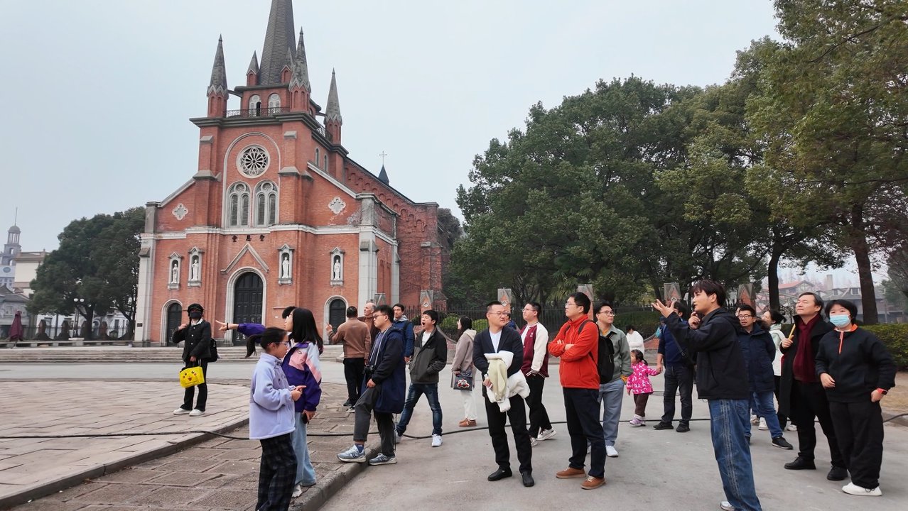 秋高气爽,阳光和煦。为丰富教职工文化生活,搭建交流互动的平台,历史学系组织教职工前往松江车墩影视城开展秋游活动。踏入影视城的瞬间,仿佛穿越了时光长廊。复古的有轨电车缓缓驶过铺满碎石的街道,欧式风格的尖顶建筑与青砖黛瓦的石库门民居相映成趣,街边悬挂的老式招牌、霓虹彩灯,瞬间将人拉回了二十世纪三、四十年代的老上海。老师们纷纷驻足,或指着熟悉的场景追忆起曾经的红色岁月,或拿出手机与同伴合影留念,想要将这独特的景致定格。漫步在南京路、外滩等复刻场景中,黄包车、老爷车穿梭其间,身着民国服饰的演员擦肩而过,恍惚间竟有置身影视剧片场的错觉。几位年轻教师饶有兴致地坐上黄包车,体验着老上海的出行方式,爽朗的笑声